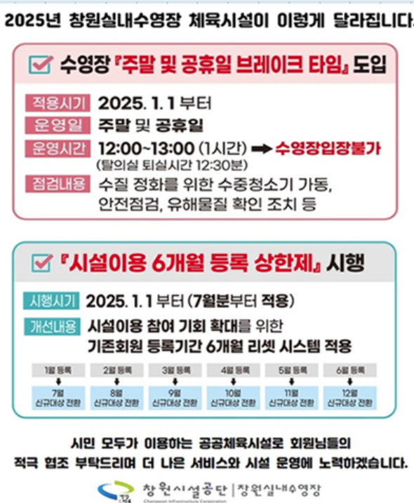 - 현장 또는 온라인 접수 가능 (상세는 창원시 체육시설 홈페이지 참조)