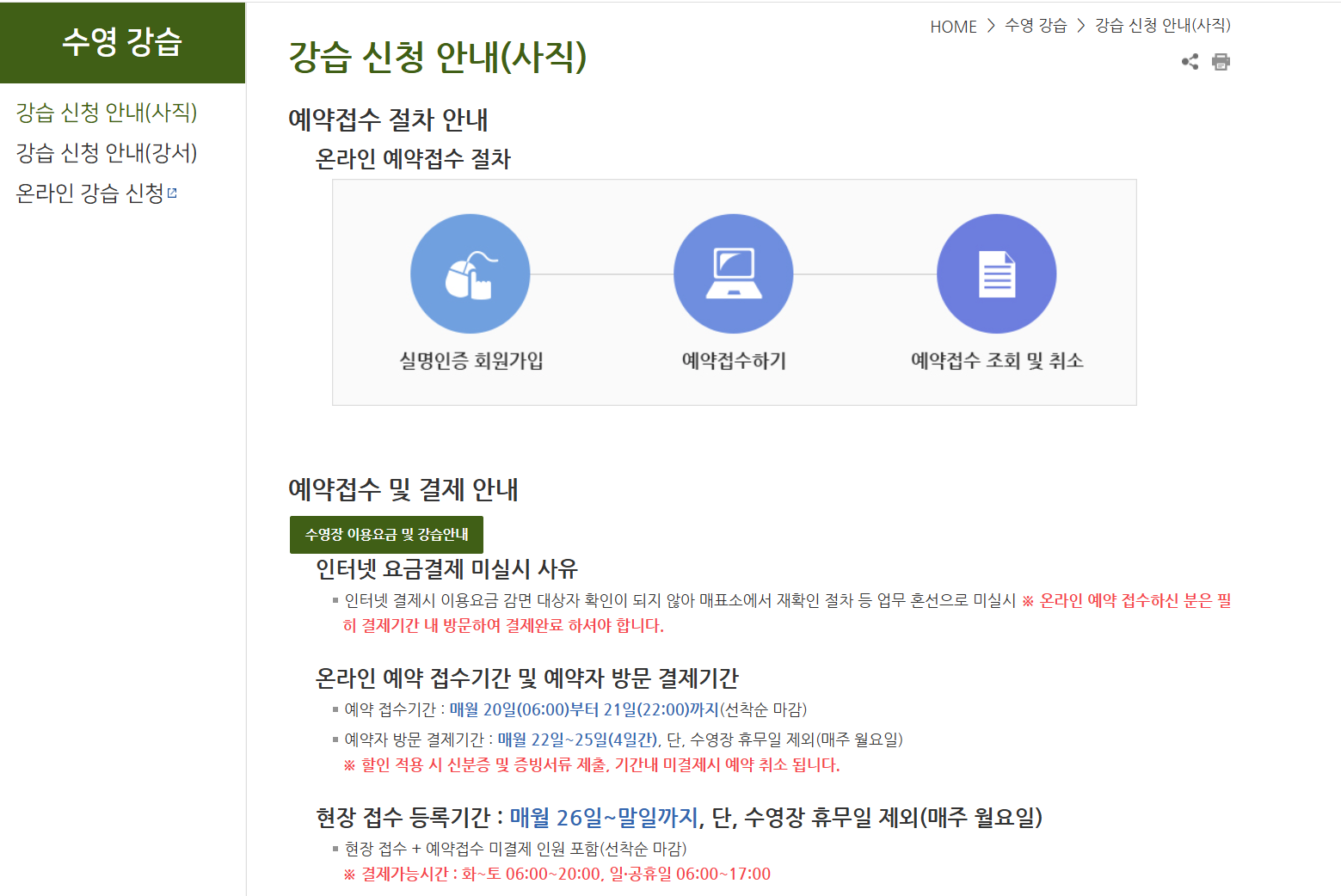 - 특징: 정확한 자유수영 시간은 홈페이지 참조 필수 / 인근 공공 체육시설과 연계 가능