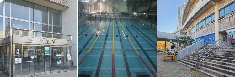 - 특징: 50m 레인 / 오리발, 패들 사용 가능한 전용 시간대 운영 / 주차 공간 넉넉 / 지하철 사직역에서 도보 5분