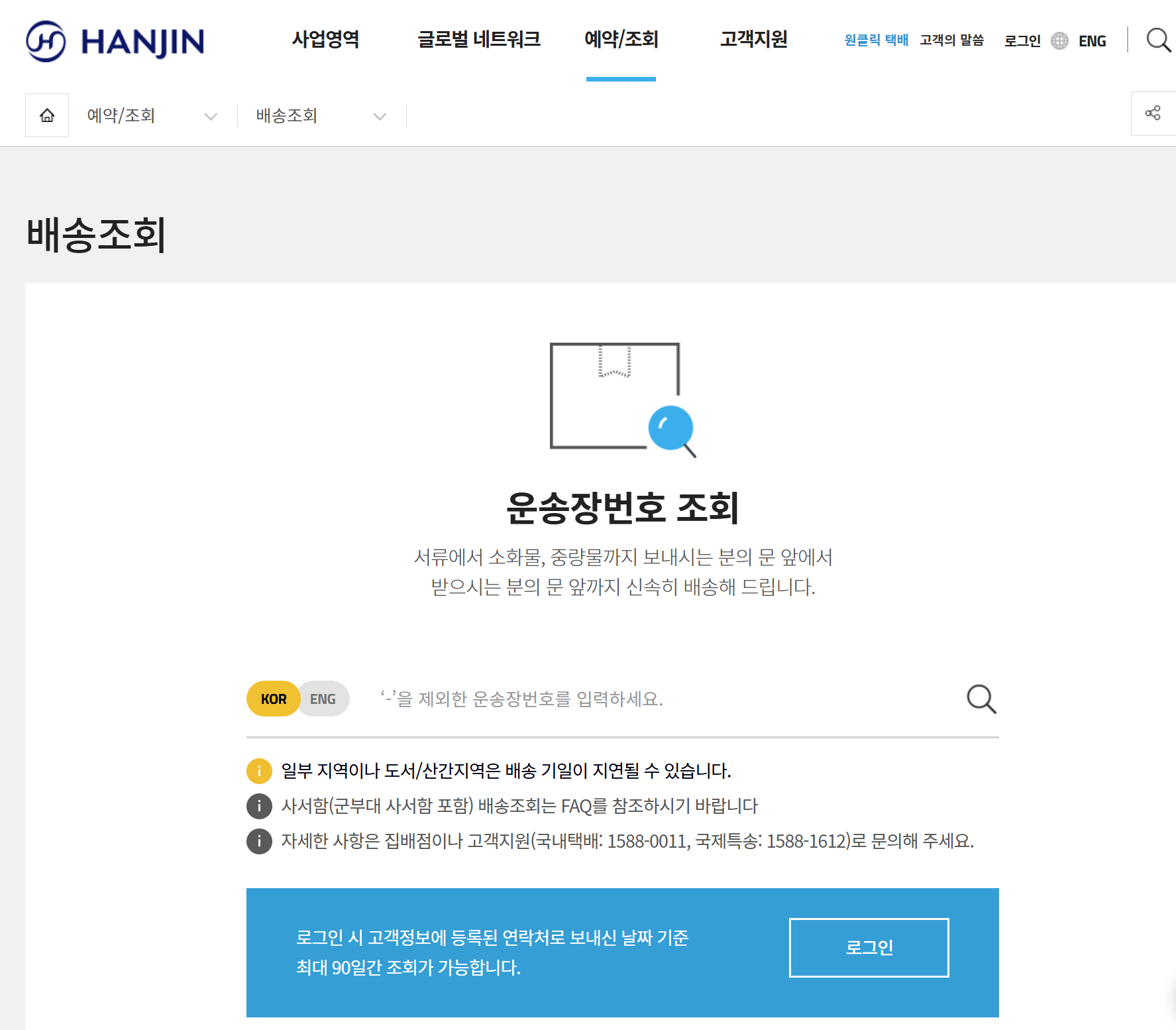 - 한진택배 배송조회 기본방법