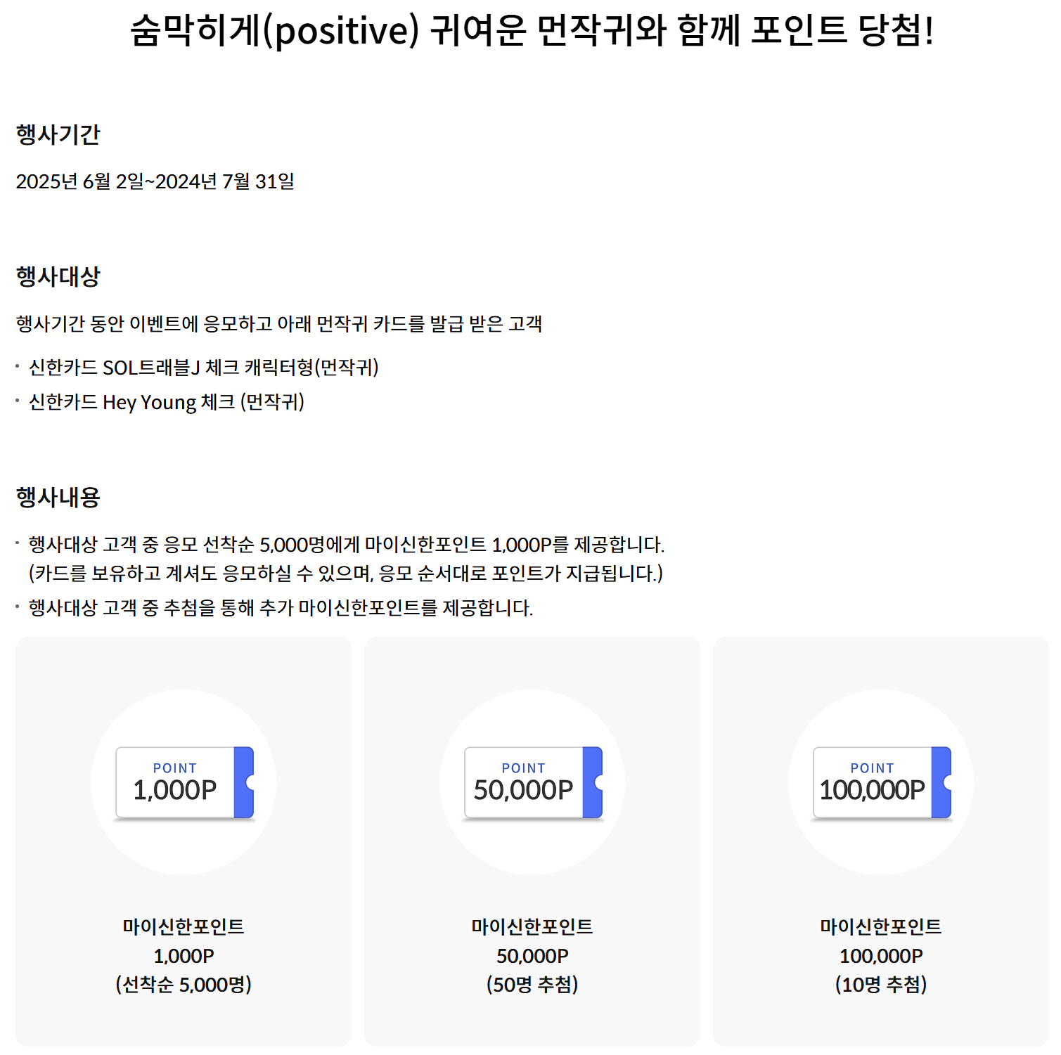 - 추첨을 통해 50명에게 50,000P, 10명에게 100,000P 추가 지급