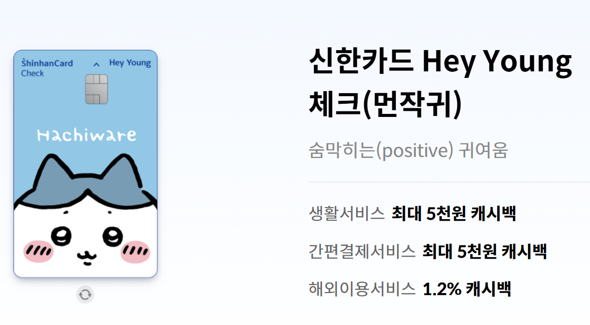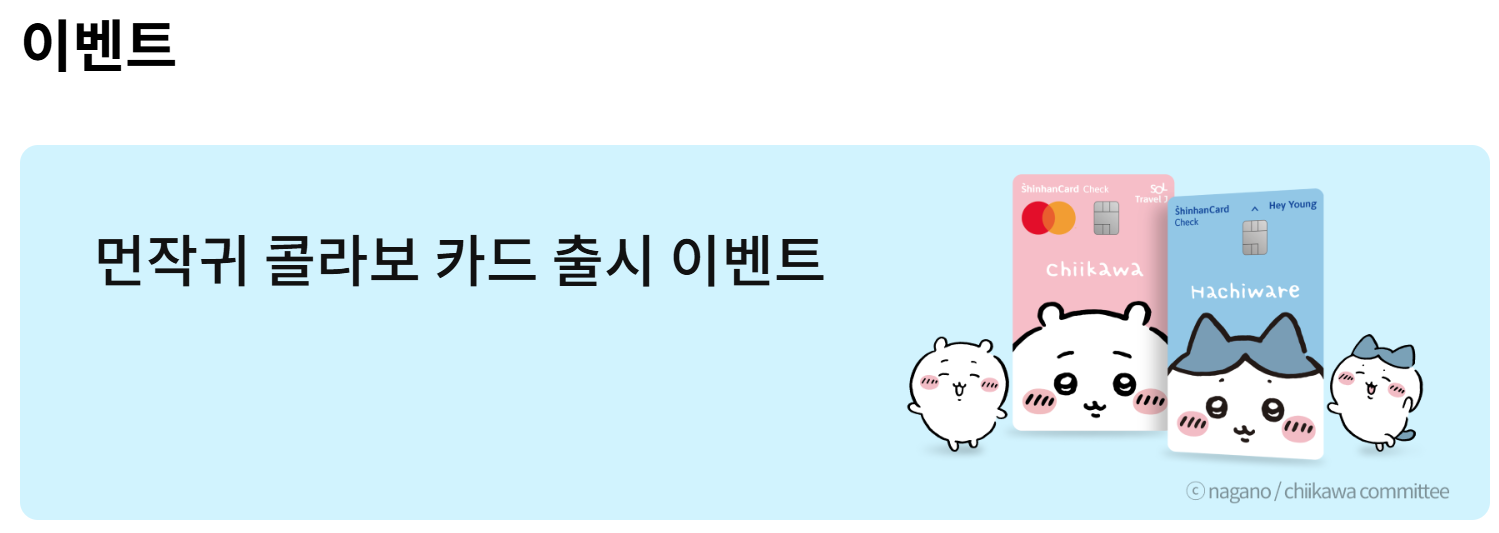 신한카드는 'Hey Young 체크'와 'SOL트래블J 체크' 두 가지 카드에 먼작귀 캐릭터 디자인을 적용했어요. 특히 하치와레 팬이라면 꼭 소장하고 싶은 아이템이죠. 발급방법, 홈페이지, 카드혜택, 이벤트까지 상세히 알려드립니다.