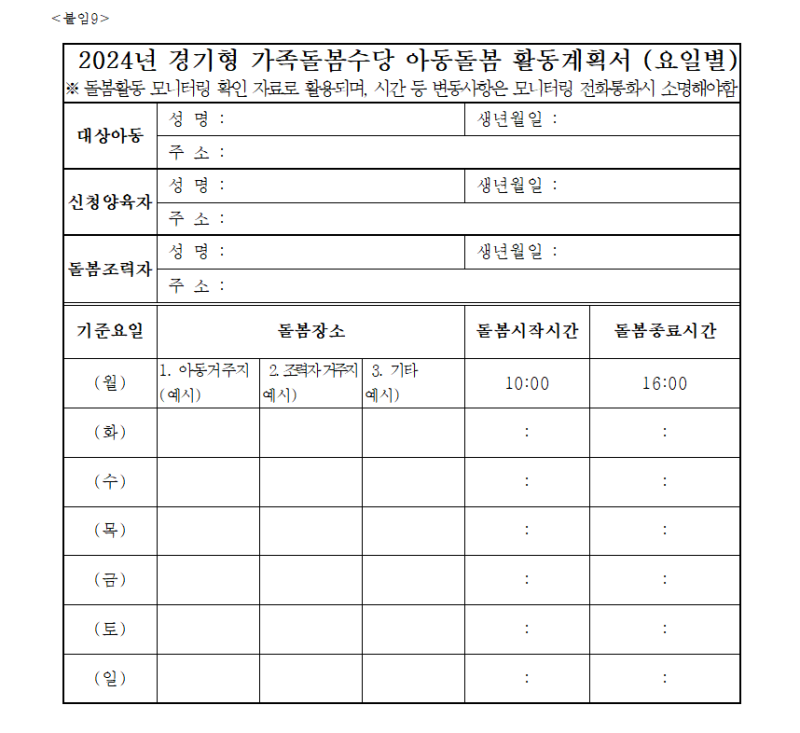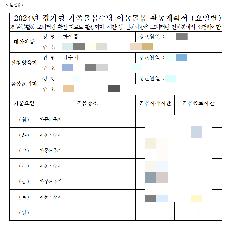 → 사진, 서명일지, 출석부 등으로 실제 돌봄 여부를 증명해야 합니다. - 수당 수령 후 사후관리