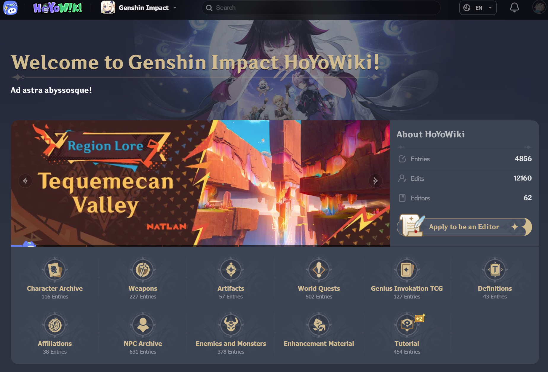 🔗 원신 공식 위키 (캐릭터 정보·성유물·무기 등)