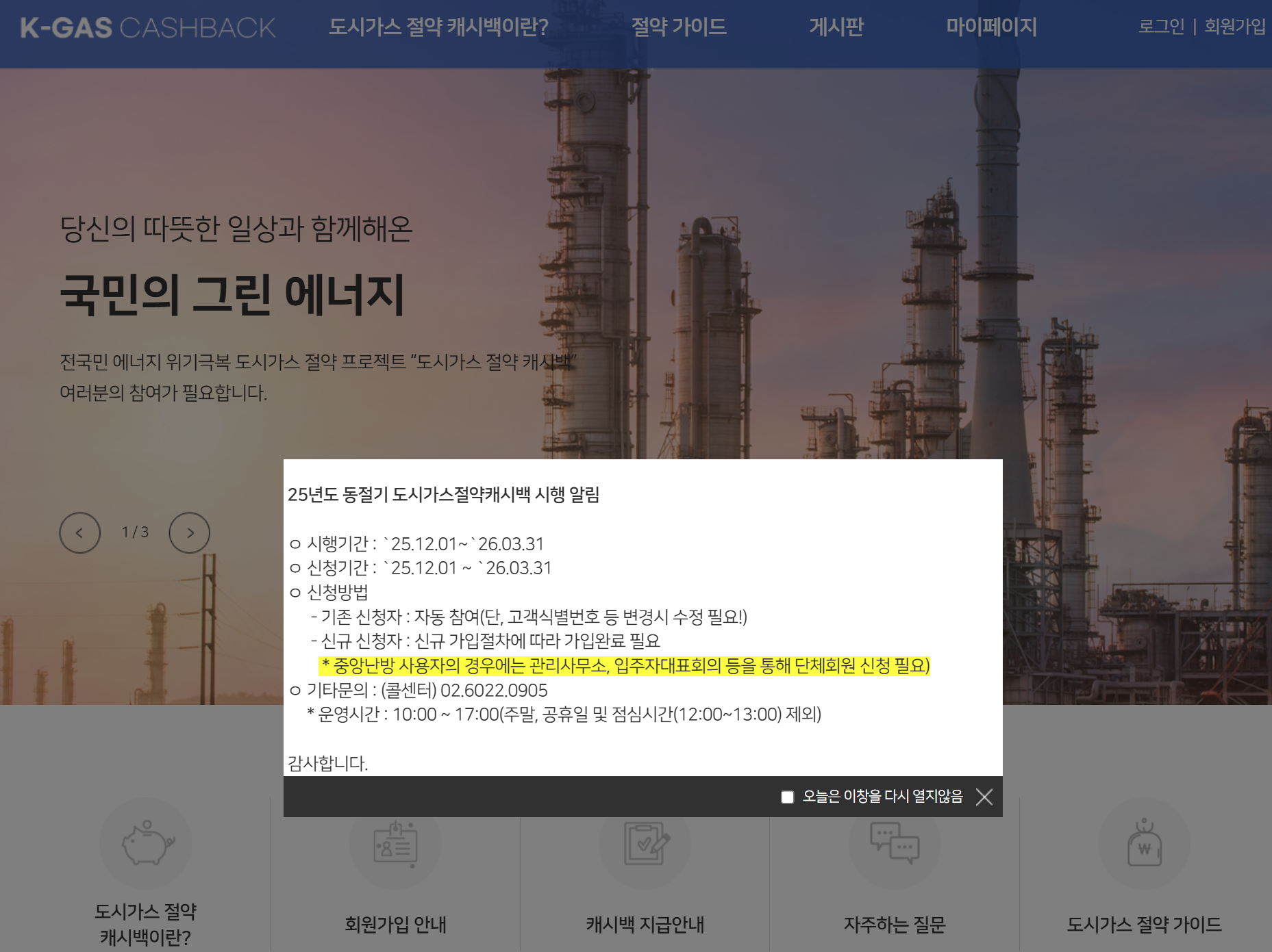 1️⃣ 도시가스 절약 캐시백 홈페이지 접속