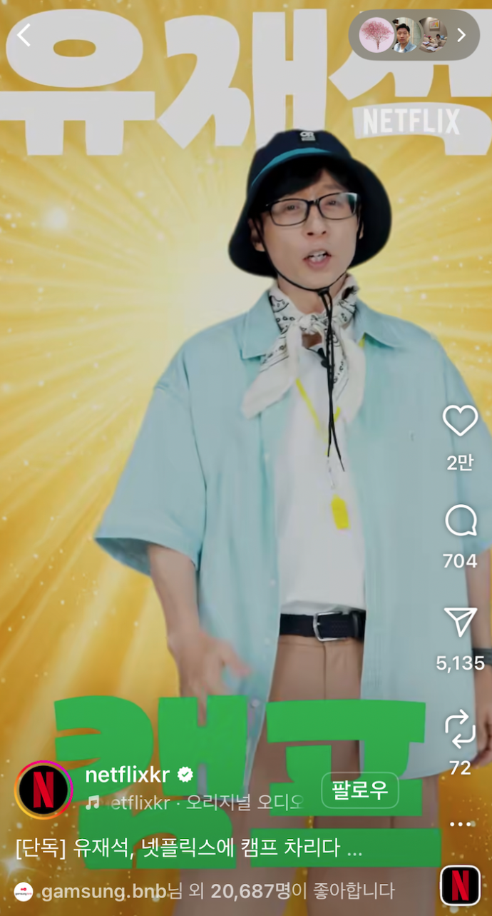 👉 넷플릭스코리아 인스타그램(TV 예능 일정 안내)