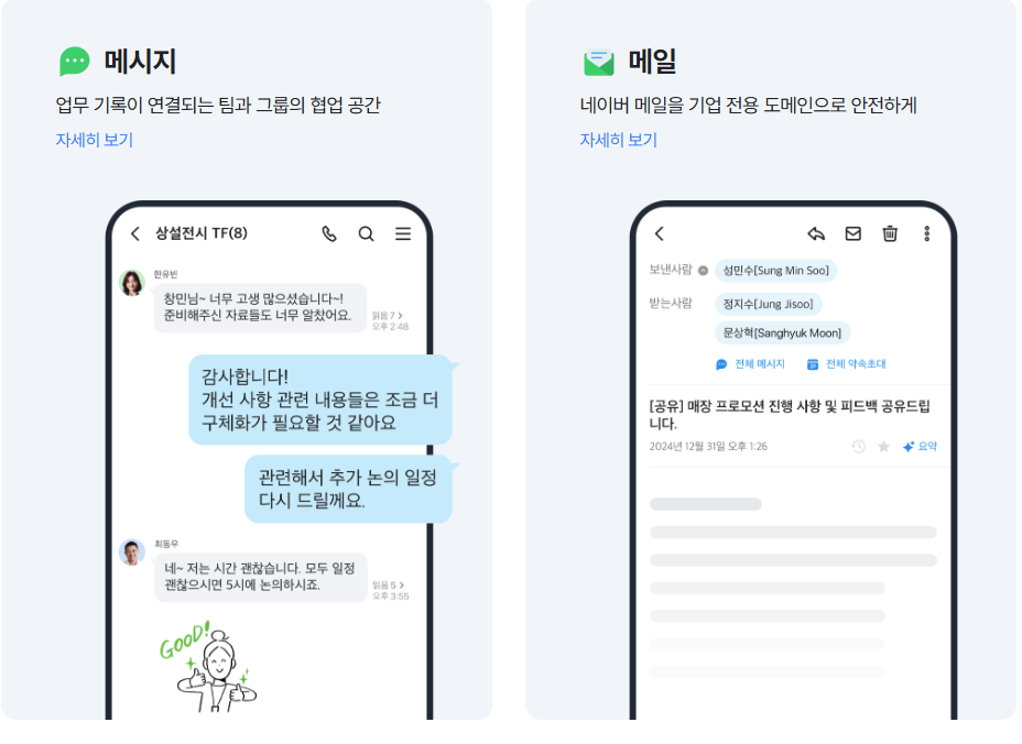 - 공식 홈페이지 또는 네이버웍스 앱 다운로드 페이지에서 PC버전 다운로드 가능