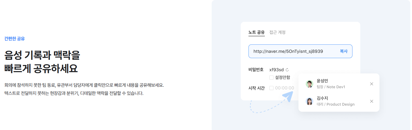 - 공유 기능: 회의록 링크 공유, 팀원에게 실시간 전달