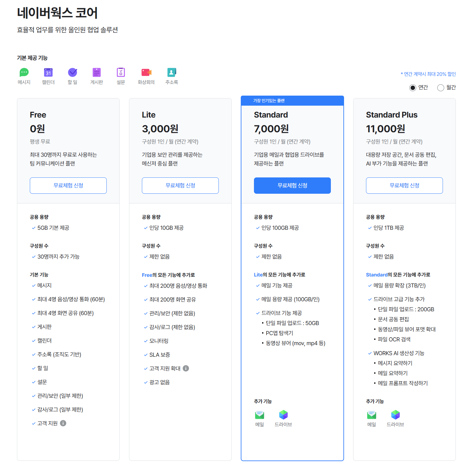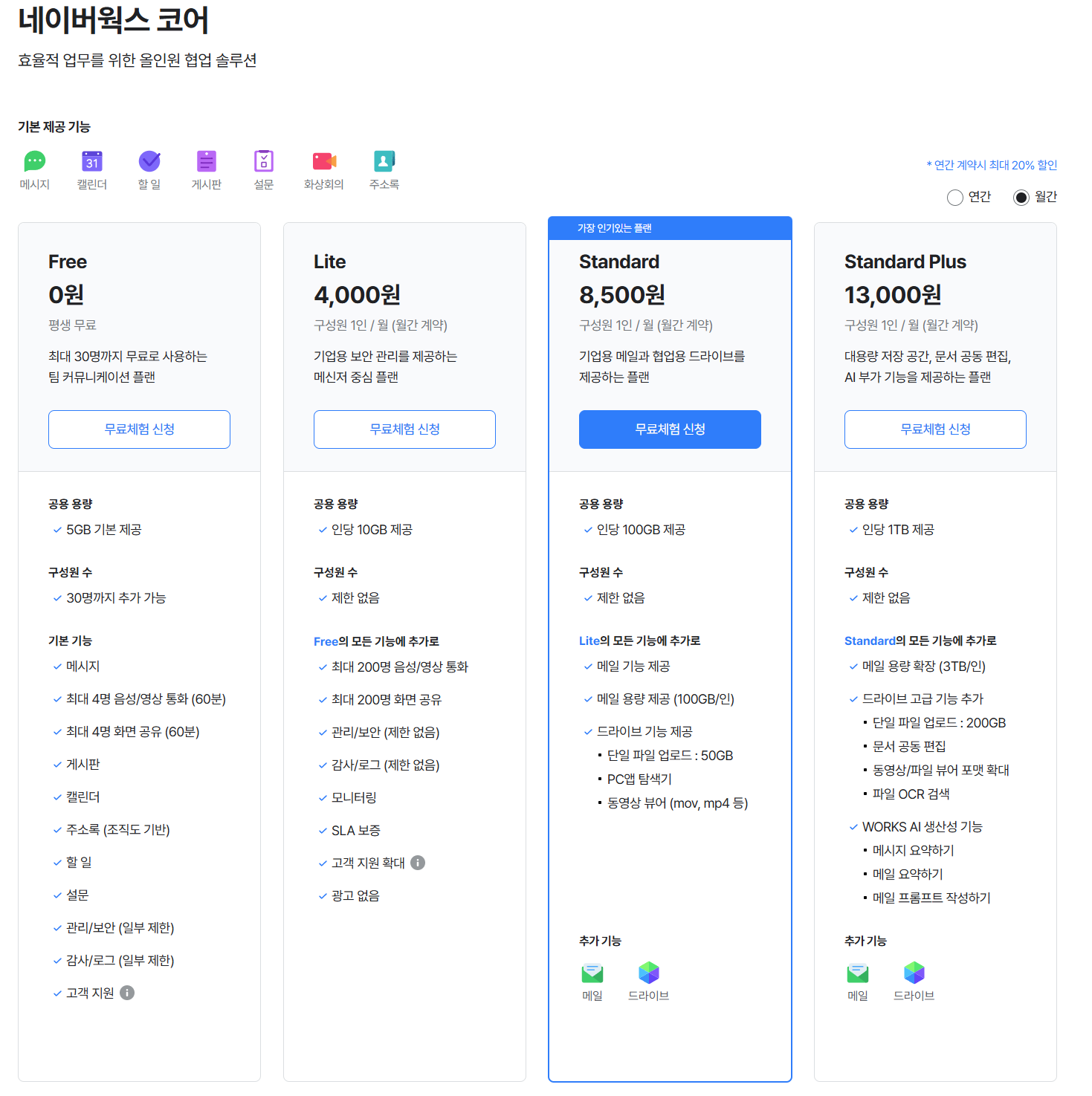 유료 요금제 (네이버웍스 연계)