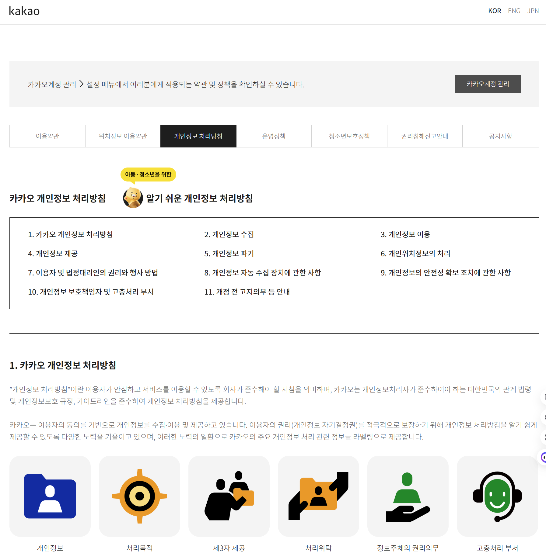 2) 카카오 개인정보 처리방침 – 위치정보 처리 기준