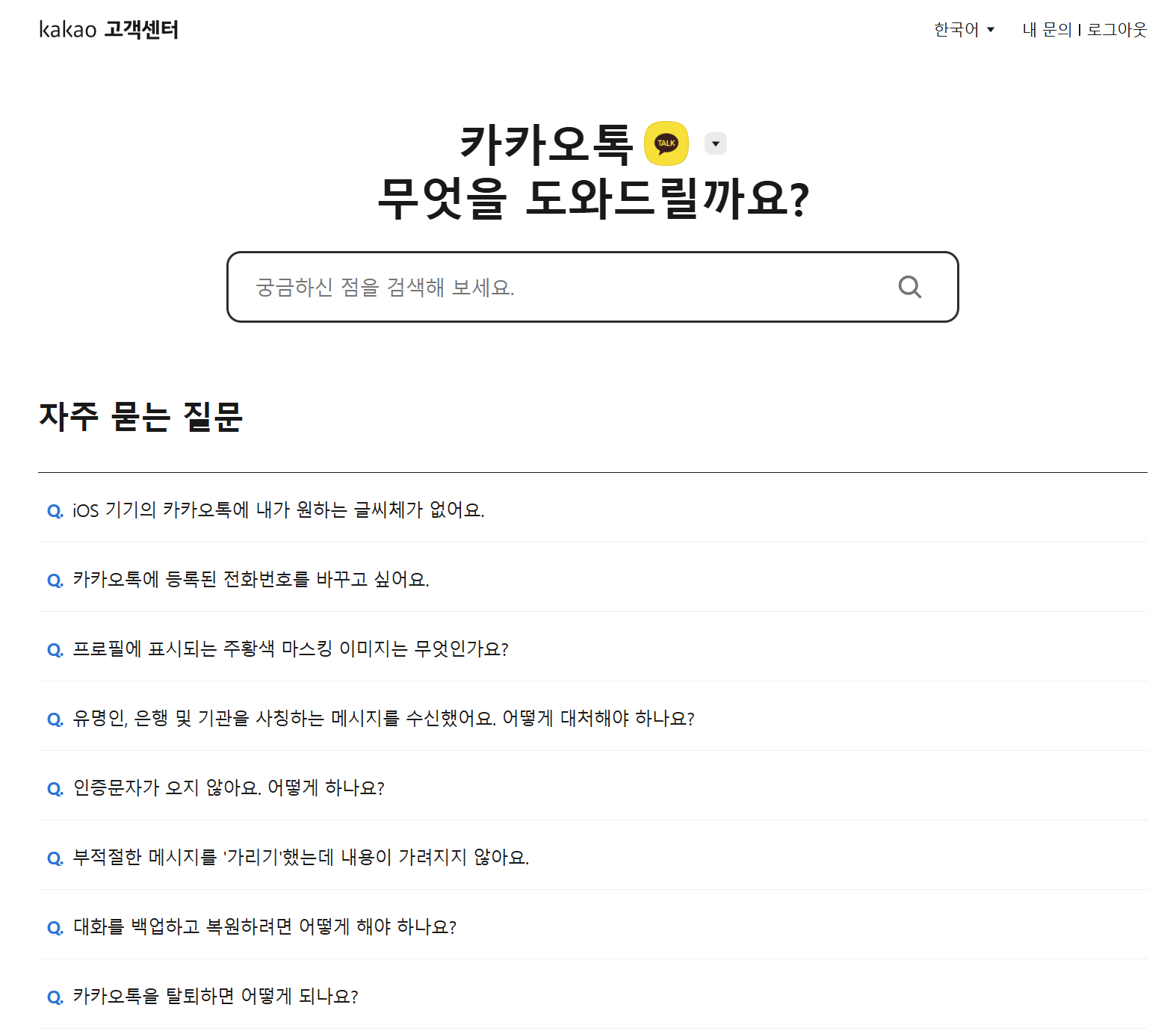 1) 카카오 고객센터 – 카카오톡 전체 기능 안내