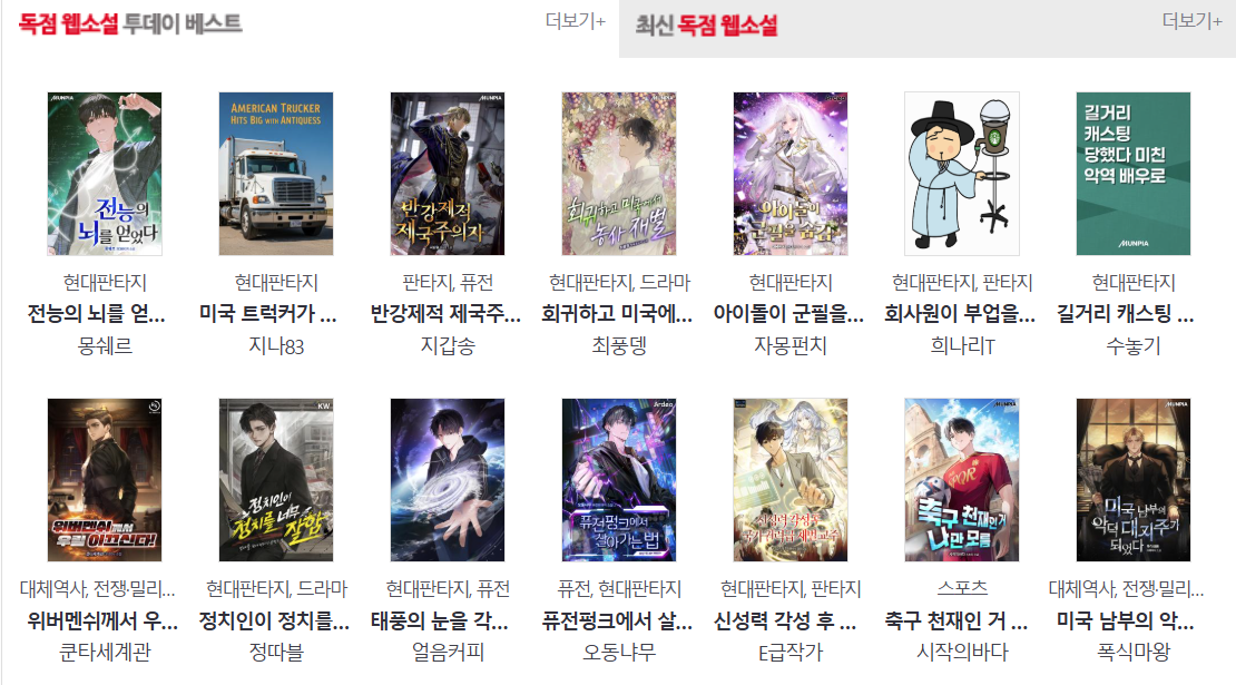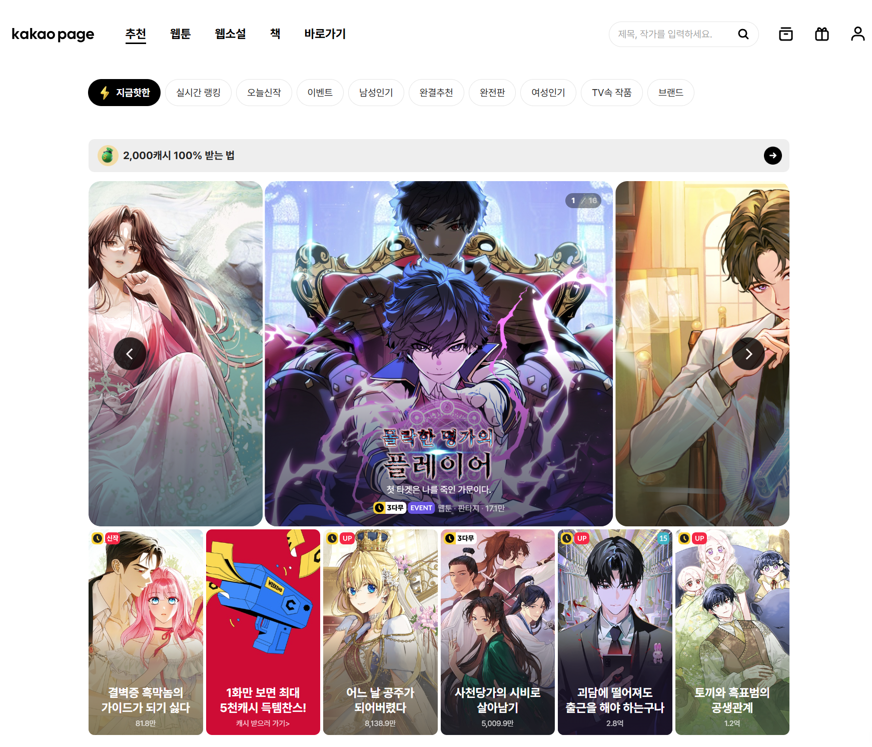 특히 네이버 시리즈, 카카오페이지 같은 플랫폼에서
