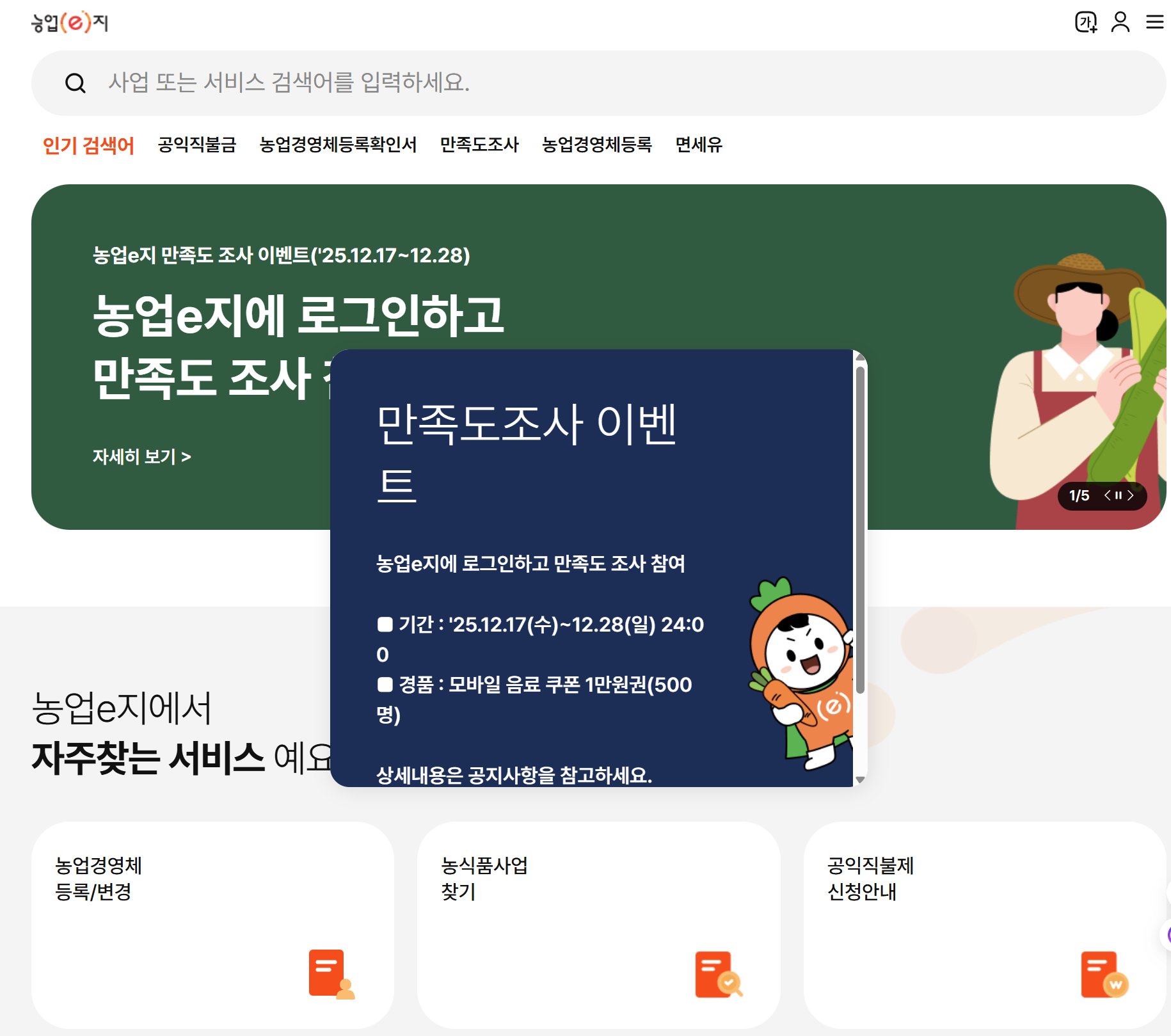- 농업e지 홈페이지에서 먼저 확인하면 좋은 것