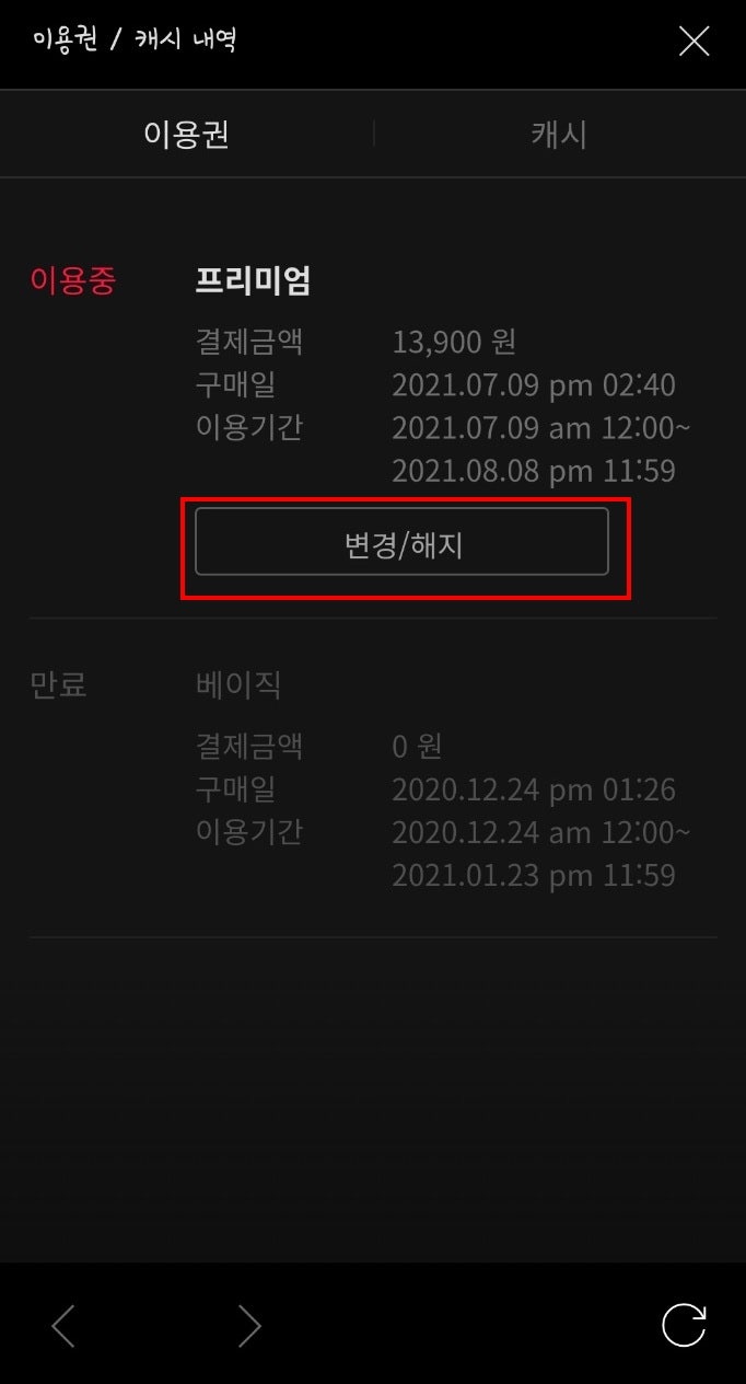 - 프리미엄 → 베이직 등 요금제 다운그레이드