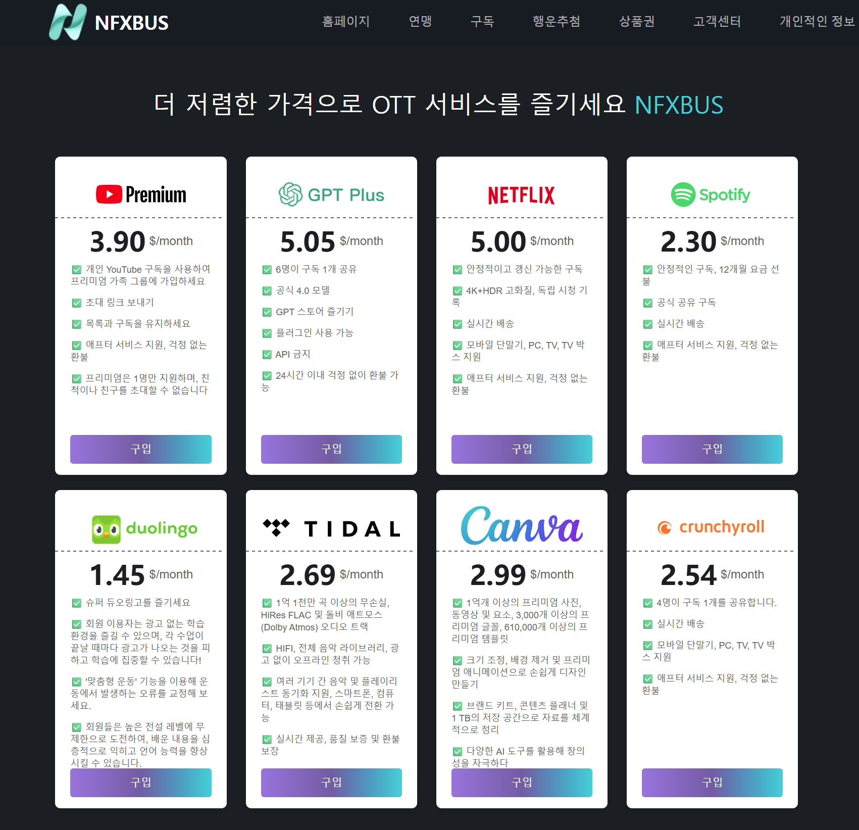 비교 항목 직접 구독 (공식) NFXBUS 이용