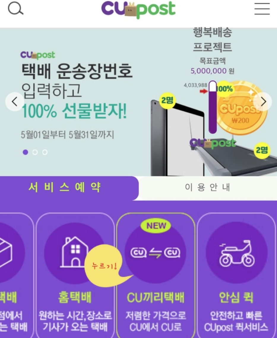 | CU 택배 서비스 안내 | https://www.cupost.co.kr/postbox/common/guideHowto.cupost |