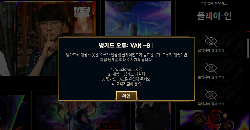 - 롤 뱅가드 84 오류 원인