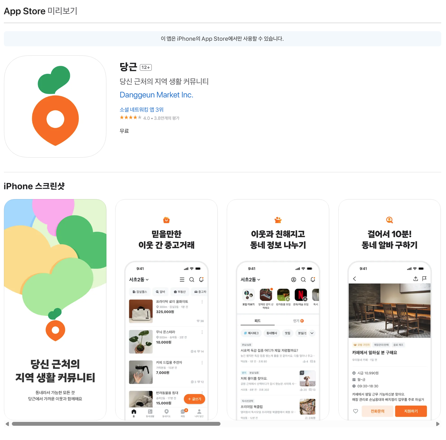 - 당근마켓 앱 다운로드 (iOS)