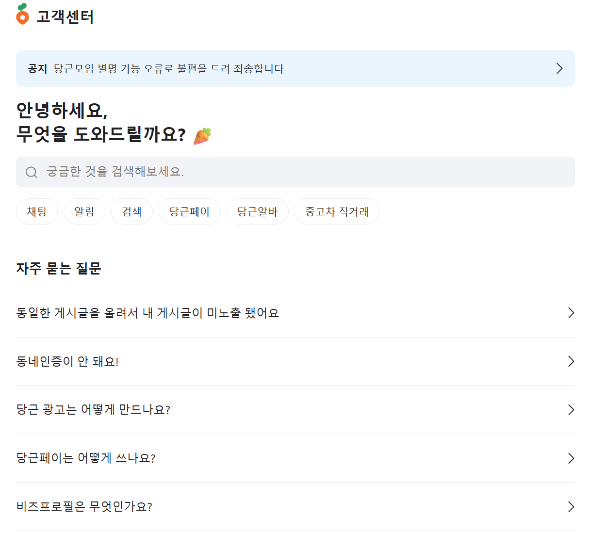 유사 사기 주의 공지: 🔗 당근마켓 고객센터 공지사항
