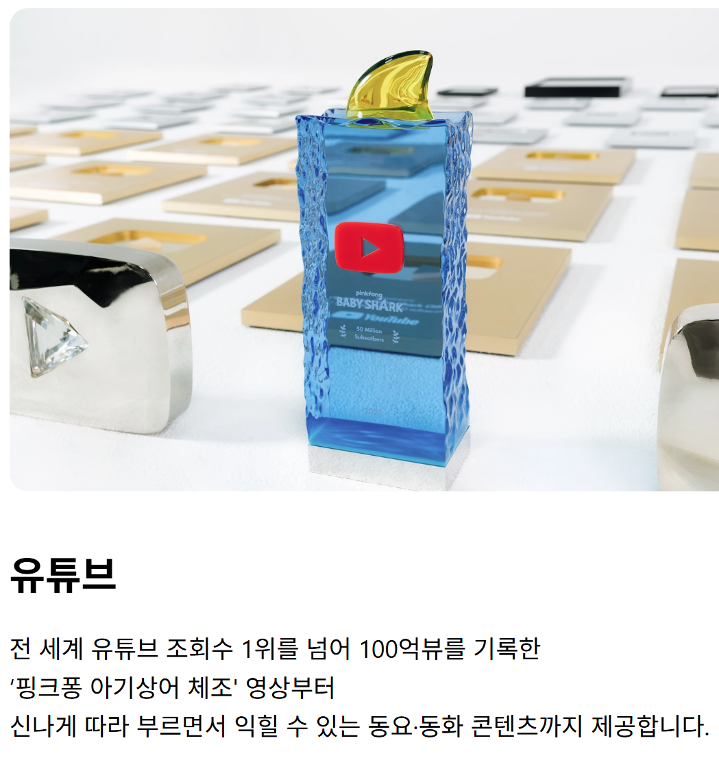 - 핵심 IP: 아기상어(Baby Shark), 핑크퐁