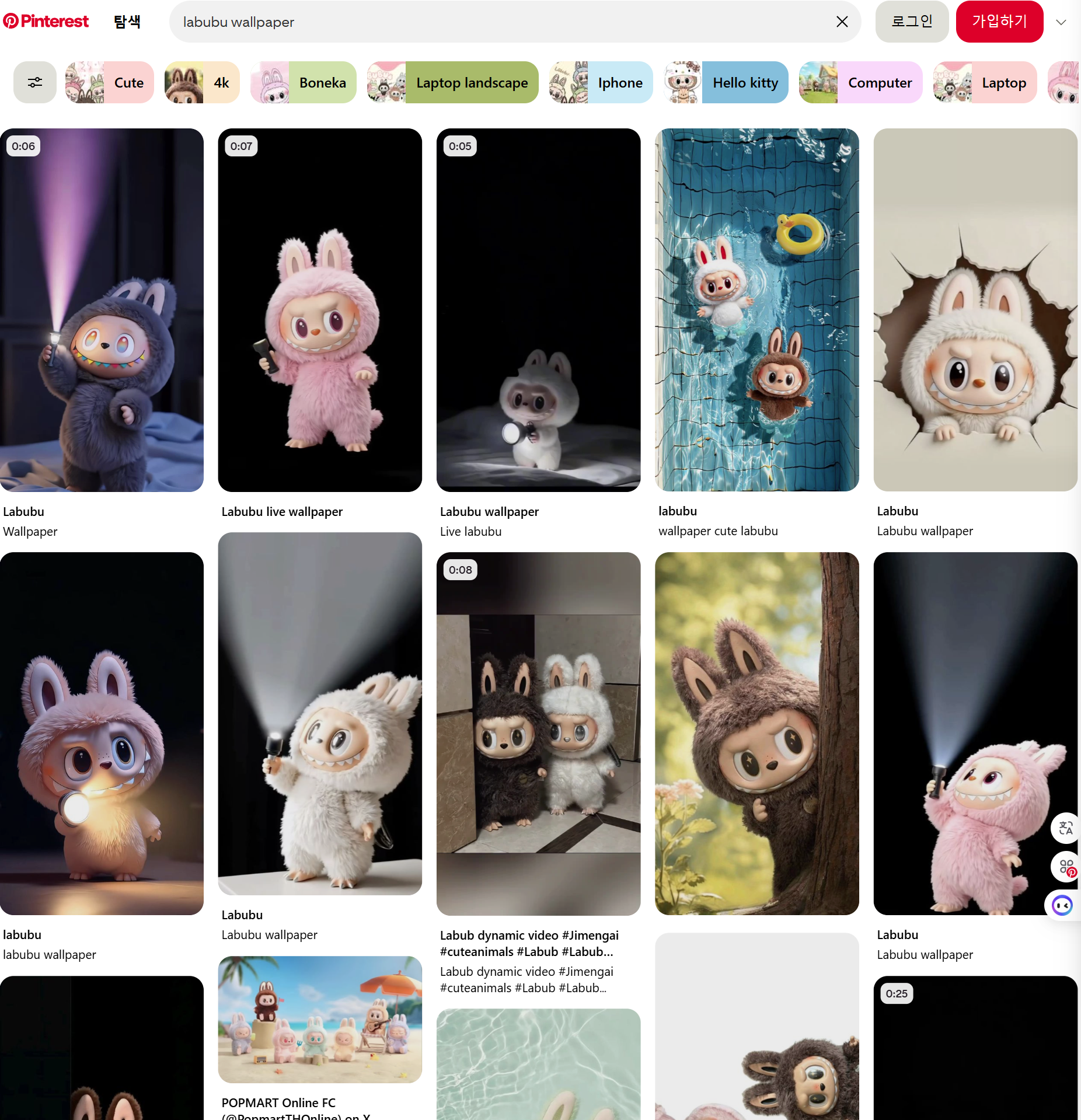 - 인스타그램 #라부부테마 검색 → 사용자가 만든 배경 무료 배포 중