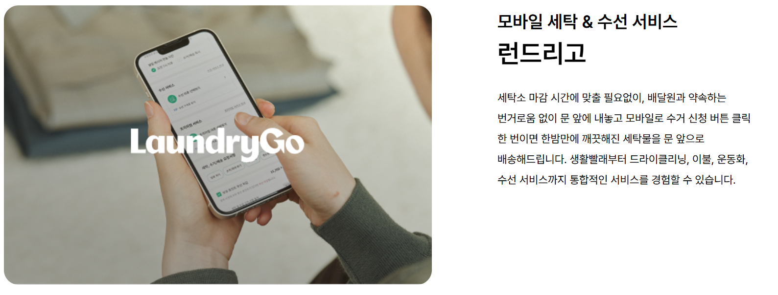 - 런드리고: 수거부터 배송까지 자동화된 물류 + 품목 다양성 + 앱 편의성 강점.