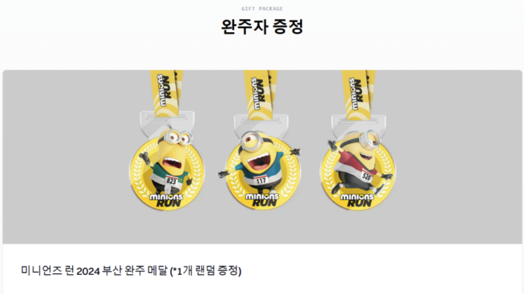 🎽 참가 키트 제공 (미니언즈 러닝 티셔츠, 개인 번호표 & RFID 기록 칩, 공식 기념품 패키지)