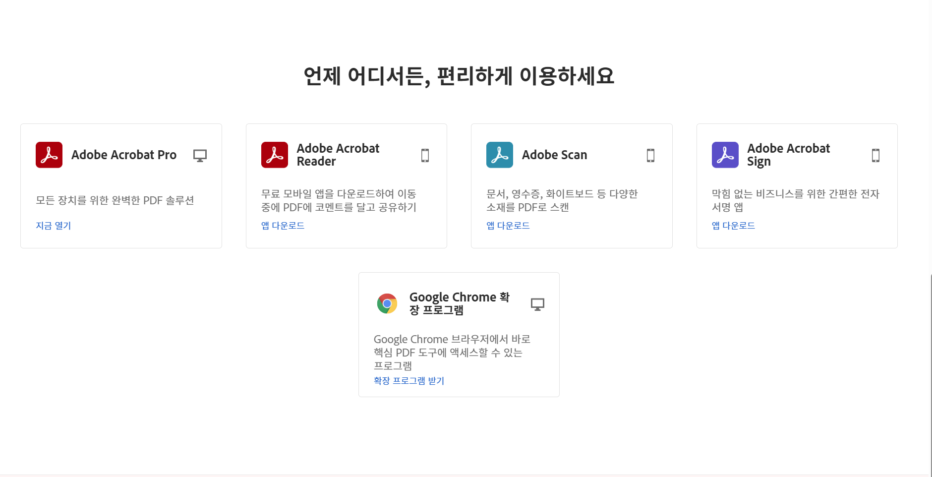 - PDF 편집이 필요한 경우, 어도비 어크로뱃 프로가 필수