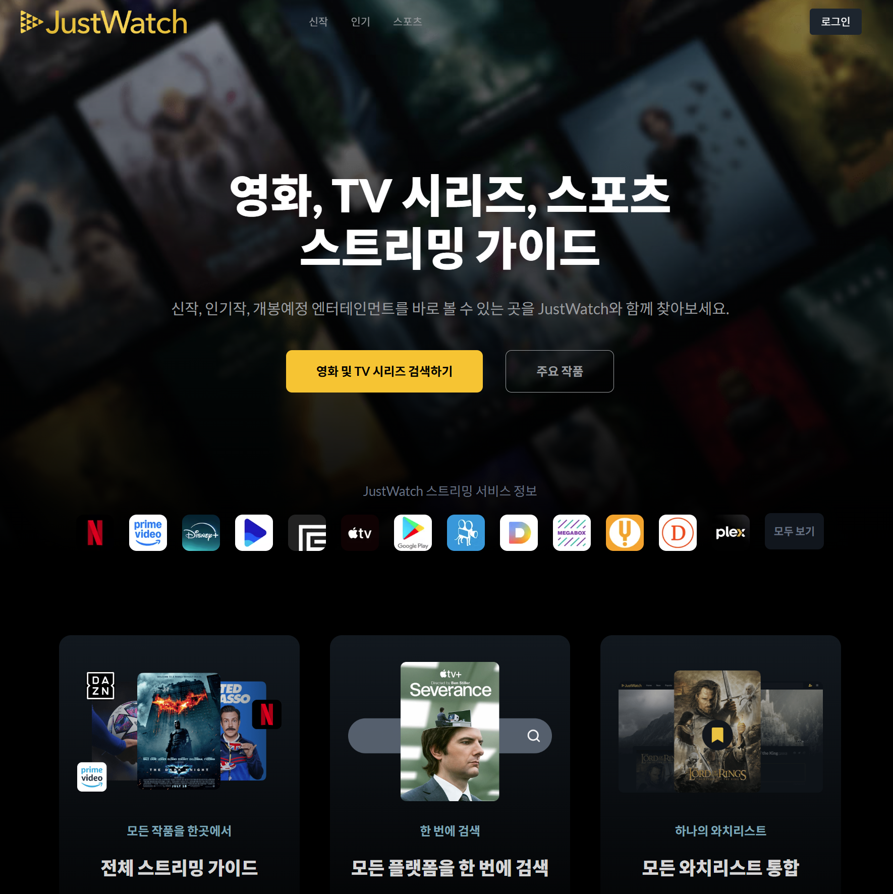 (JustWatch는 지역별 시청 가능 플랫폼 확인에 유용)