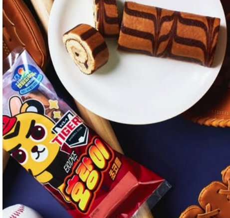 - 호랑이 무늬 시트에 초코칩과 초코 크림을 롤링한 기아 타이거즈 테마의 제품.