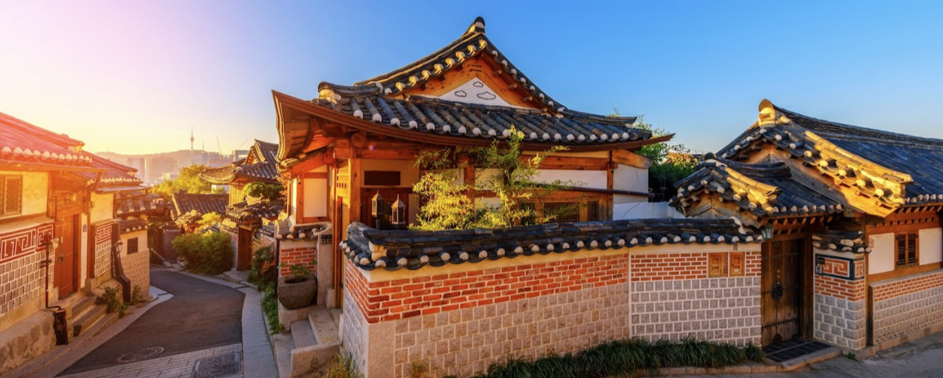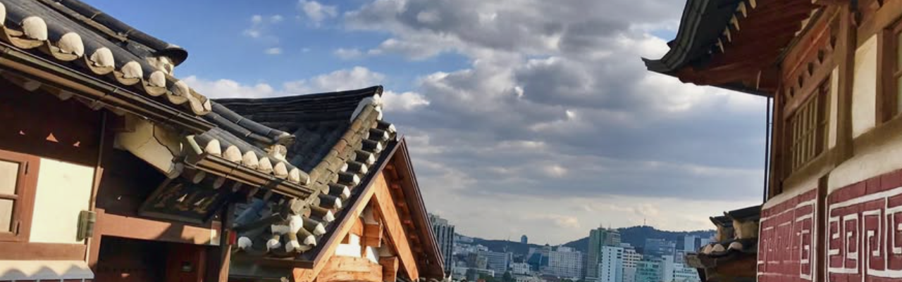 A charming neighborhood filled with hanok — traditional Korean houses.