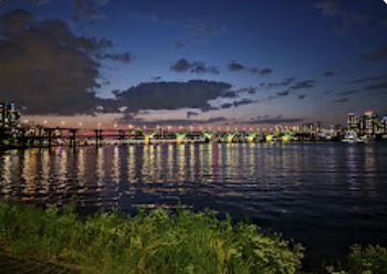 A favorite riverside park where locals relax, picnic, and ride bikes.