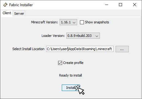 다운로드한 fabric-installer.jar 파일을 실행합니다.
